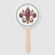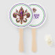 This paddle fan is shown in a festive Mardi Gras jeweled Fleur de Lis print.