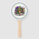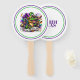 This paddle fan is shown in a festive Mardi Gras gator print.