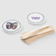 This paddle fan is shown in a festive Mardi Gras mask print.