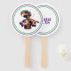 This paddle fan is shown in a festive Mardi Gras musician print.