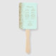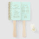This elegant, modern wedding program fan features a mint green background edged with gold faux glitter. The text appears in elegant gold-colored handwriting and copperplate fonts.