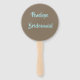 Design de fã divertida para a festa de casamento do tema das noivas na praia, em populares cores náuticas de casamento, de marrom arenoso e azul aqua em dois tons, com texto personalizável que diz o Clube Fan de Bride e tem o nome das damas de honra no verso com as cores invertidas.