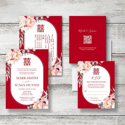 Triilingual Wedding Invitation - Peony on RedCriado por Tracy Ta