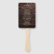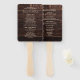 Programa de cerimônia de núpcias/ordem dos ventiladores de mão de serviço numa madeira marrom-escura rústica com texto creme. Esses fãs de mão incluem o programa de cerimônia junto com os nomes dos pais da noiva e do noivo, o partido oficial, noiva e outros participantes. Entre em contato conosco para obter ajuda sobre a personalização ou produtos correspondentes.