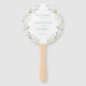 Descubra nossos elegantes fãs de mão do programa de casamento boêmia/primavera de verão. Mostrando uma sofisticada coroa entrelaçada com delicadas flores brancas, eucalipto e folhas verdes, esses fãs adicionam um toque de estilo refinado à sua cerimônia de casamento. Perfeito para uma celebração de casamento botânico única e na moda clássica.