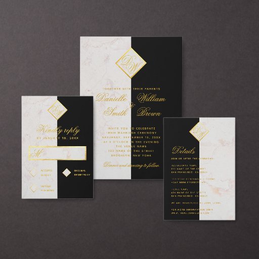 Black White Marble Gold Monogram Wedding SuiteCriado por Artifex Designs