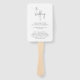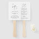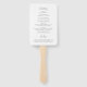 Leque de mão de programa de casamento elegante com um design simples com "o casamento de" em um script moderno manuscrito e os detalhes do seu evento em fontes serif clássicas.