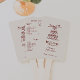 Leques de programa de casamento em estilo doodle nas cores creme e vermelho são uma maneira encantadora e funcional de dar as boas-vindas aos convidados à sua cerimônia, mantendo-os frescos e informados. Com arte desenhada à mão e caprichosa de uma torre de champanhe encimada por um casal brindando, esse design moderno adiciona um clima lúdico e romântico aos detalhes do seu casamento. As ilustrações em vermelho rico e os acentos em letra cursiva destacam-se lindamente contra o fundo creme suave, criando uma estética quente e inspirada no vintage. Perfeito para casamentos ao ar livre, cerimônias em jardins ou qualquer evento em clima quente, esse leque duplo inclui detalhes da cerimônia de um lado e uma lista completa dos membros da festa de casamento do outro. O cabo de madeira fácil de segurar adiciona praticidade, enquanto o design ilustrado combina-se lindamente com outros elementos de casamento em estilo doodle. Ideal para casais que desejam incorporar personalidade e tendências de design atuais no seu grande dia, esse leque de casamento é