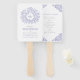 O fã do programa de cerimônia de casamento faz parte da coleção de casamentos de monogramas de arte desenhados à mão. Simples design de folha, circulando suas próprias iniciais monográficas em azul roxo e cinzas e em um fundo branco. Outras cores e itens correspondentes disponíveis. © Desenho original em folha e design por Sarah Trett para www.mylittleedenweddings.com em zazzle.