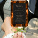 Este elegante e moderno fã do programa de núpcias mostra um fundo laranja queimado, aparado com brilho dourado. O texto aparece em letras elegantes douradas coloridas e fontes copperplate em um retângulo escuro fora de preto.