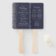 Este elegante e moderno fã do programa de casamento mostra um fundo azul escuro coberto de cintilação de prata. O texto aparece em letras elegantes de cinza prateada e fontes em placas.