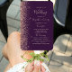 Este elegante e moderno fã do programa de casamento mostra um fundo roxo escuro coberto com brilho rosa dourado. O texto aparece em letras elegantes, cor-de-rosa-rosa, e fontes em prato.