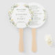 Descubra nossos elegantes fãs de mão do programa de casamento boêmia/primavera de verão. Mostrando uma coroa floral entrelaçada com flores silvestres coloridas e flores de campo, esses fãs adicionam um toque de estilo refinado à sua cerimônia de casamento. Perfeito para uma natureza botânica única e na moda clássica temia a celebração do casamento.