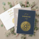 Um design de passaporte de casamento de destino azul marinho com bússola dourada e elementos viagem. Este design é ideal para todos os casamentos de Primavera, Verão, outono e inverno. Um marinho de viagem de casamento elegante, azul e ouro, com um passaporte. Um design do programa de casamento de destino moderno com elementos elegantes. Os convites de casamento e outros artigos de papelaria também estão disponíveis.