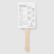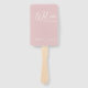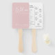 Blush Calliografia Pictogramas Ventilador de Mão do Programa de Casamento Simples, moderno e minimalista no estilo, programa de casamento cor esbranquiçada com cabeçalho de caligrafia amovível. A parte de trás do programa apresenta os detalhes da cerimônia de casamento e inclui ícones ou pictogramas em preto.