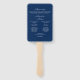 Compartilhe os detalhes do casamento com sua família e amigos com os fãs do programa de casamento personalizáveis. Ele apresenta uma tipografia azul marinho e um roteiro elegante. Estes fãs do programa azul-marinho são perfeitos para casamentos de primavera e verão. Personalize adicionando nomes, data e outros detalhes do evento.