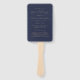 Este elegante e moderno fã do programa de casamento mostra texto dourado sobre fundo azul marinho. Os títulos e legendas aparecem em belos guiões de escrita manual, com o texto restante na fonte sans serif.
