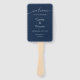Fã de Mão do Programa de Casamento de Script Moderno Azul-Marinho para sua elegante cerimônia de casamento minimalista. Estes favores são perfeitos para a sua cerimônia clássica de renovação de votos. Personalize todo o texto do seu evento.
