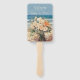 Um programa de casamento fã-mão com um tema litorâneo, adornada com um buquê de flores de uma noiva embelezado com um belo peixe-estrela, mostrando uma combinação harmoniosa de rosas bege, laranja e azul. A design exumenta um talento artístico, reminiscente de uma pintura a óleo, emprestando à carta um estilo distinto, sofisticado e elegante. Este design de cartão único e especial é criado exclusivamente para uma noiva especial. O conjunto inteiro de placas de design está acessível no mesmo design.