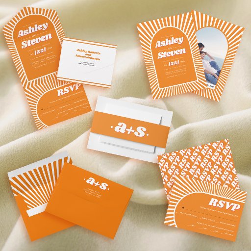 Retro orange sunrays groovy 70's inspired weddingCriado por Modern Designs