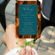 Este elegante e moderno fã do programa de núpcias mostra um fundo laranja queimado, aparado com brilho dourado. O texto aparece em letras elegantes douradas e fontes em cores em um retângulo azul teal.