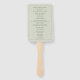 Leques de mão para programa de cerimônia de casamento em um belo e elegante tom verde musgo/mint. Eles incluem o programa da cerimônia juntamente com os nomes dos pais da noiva e do noivo, o celebrante, cortejo, e outros participantes. Entre em contato conosco para obter ajuda com personalização ou produtos correspondentes.