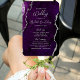 Este elegante leque de programa de casamento moderno apresenta um fundo de ágata roxa aparado com brilho falso prateado. O texto aparece em fontes de caligrafia cinza prateado e cobre.