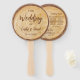Um leque de programa de casamento para um tema de casamento rústico.