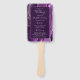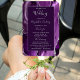 Este elegante e moderno fã do programa de casamento mostra um fundo agitado roxo, aparado com brilho de prata. O texto aparece em letras elegantes de cinza prateada e fontes de impressão em um retângulo roxo profundo.