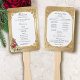 Crie um casamento no inverno inesquecível com este elegante design do programa de fãs para as mãos de feriado, com um spray de rosca de rosas de Natal, poinsettia, colly e pinheiro, etiqueta branca com uma borda de ouro ornamentado e um fundo metálico de cor damasco de ouro metálico e opulente.