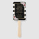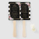 Fã de mão do programa de casamento floral branco e preto elegante com listras brancas, apresentando flores cor-de-rosa esbranquiçadas e verde armando os detalhes do casamento. Itens correspondentes disponíveis.