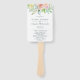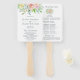 Leques elegantes de casamento com programa floral com uma borda superior de folhagem e flores em aquarela em rosa, pêssego, lavanda, branco e azul. Estes leques de mão de casamento fornecerão aos seus convidados a ordem do serviço e são perfeitos para um casamento de primavera.