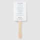 Ventilador de Mão do Programa de Casamento clássico com palavras de sotaque em uma tipografia de caligrafia elegante. Todo o texto é azul marinho sobre um fundo branco e pode ser alterado para qualquer cor desejada clicando no botão "personalizar". Estes Fãs de Mão do Programa de Casamento são perfeitos para um casamento formal.