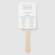 Um fã de mão do programa de casamento moderno com um simples design com fontes clássicas de serifa e de script elegante.