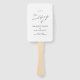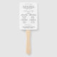 Leque de Mão para Programa de Casamento Simples com "o casamento de" em caligrafia junto com os detalhes do seu casamento em preto e branco. O verso tem a ordem da sua cerimônia, festa de casamento e mensagem de agradecimento. Um design minimalista com tipografia chic para um toque elegante.
