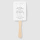 Um fã de mão do programa de casamento moderno com um simples design com uma combinação de um roteiro elegante e fontes clássicas de serifa.