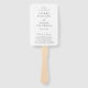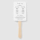 Fã de mão do programa de casamento moderno, apresentando um design simples com um layout minimalista. As fontes são uma combinação de uma fonte serif clássica e um script elegante.
