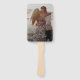 Um fã de mão do programa de casamento moderno, apresentando um design simples, mas elegante, com seu monograma inicial em uma fonte contemporânea, juntamente com seus detalhes de eventos cercados por uma fronteira, sobre sua foto favorita.