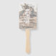Um fã de mão do programa de fotos moderno, apresentando um simples design com "o casamento de" e os cabeçalhos em uma tipografia de estilo rústico, juntamente com os detalhes de seu casamento sobre sua foto favorita com uma camada opaca. Este elegante fã de mão do programa com um layout minimalista é excelente para qualquer estilo de casamento.