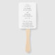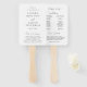 Leque de mão para programa de casamento moderno com um design simples e layout minimalista. As fontes são uma combinação de uma fonte serifada clássica e uma escrita elegante.