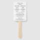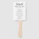 Um fã de mão do programa de casamento moderno, apresentando um design preto e branco simples e mínimo com seu monograma em uma fonte em negrito junto com seus nomes em um roteiro elegante de escrita manual. Abaixo está sua ordem de cerimônia e as costas têm sua festa de casamento, mensagem "em memória amorosa" e obrigado sua mensagem.
