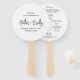 Leque de mão para programa de casamento moderno com um design simples com seus nomes em uma tipografia elegante e os detalhes do seu evento em uma fonte minimalista sem serifa. Todos os elementos de design são em preto e branco. Este leque de mão para programa de casamento chic funciona bem com qualquer estilo de casamento.