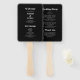 Adicione um toque de na moda moderno à sua cerimônia de casamento com nosso fã do programa de casamento. Apresentando uma caligrafia branca brilhante e letras clássicas em fundo preto, este ventilador é perfeito para casamentos formais. Além disso, você tem a opção de personalizar as cores do texto e do plano de fundo para corresponder perfeitamente ao seu tema. Mantenha seus convidados legal e informados com nosso elegante fã do programa de casamento. Peça o seu hoje!