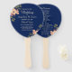 Leque de Mão de Programa de Casamento Elegante Azul Marinho e Rosé Floral. Elegante, romântico, moderno, adorável. Todos os elementos gráficos são gratuitos para alteração, movimentação ou remoção. Se você tentar, simplesmente removendo a camada de fundo azul e alterando a cor da fonte (para mais escura) - você pode facilmente obter os leques de mão de casamento brancos clássicos! Aproveite, brinque com camadas e cores e faça a melhor combinação!