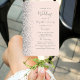 Este elegante e moderno fã do programa de casamento apresenta um fundo rosa pincelado coberto com brilho de prata. O texto aparece em letras elegantes de cinza e fontes copperplate.