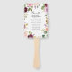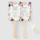 Elegante leque de mão para programa de casamento floral com seus nomes emoldurados por rosas e folhagens em tons de rosa, pêssego, burgundy, roxo e verde. Personalize os leques do programa de casamento floral adicionando a data e local do casamento, ordem dos eventos e cortejo no verso. Projetado para combinar com nossa coleção de casamento Rustic Moody Floral.