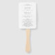 Leque de mão de programa de casamento elegante com um design simples e tradicional com os detalhes do seu evento em fontes serifadas.