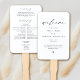 Adicione um toque de sofisticação à sua cerimônia com o nosso Fã de Mão do Programa de Casamento Simples Elegante. Apresentando um elegante design preto-e-branco com uma caligrafia graciosa, este ventilador do programa combina função e estilo, mantendo os convidados legal enquanto os guiava pelos eventos do dia. Perfeito para o casal moderno, é uma maneira muito simples de elevar seus detalhes de casamento com elegância e facilidade.