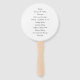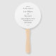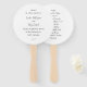 Leque de mão moderno para programa de casamento com um design simples com o seu monograma e detalhes do evento em uma caligrafia manuscrita.