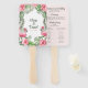 Mantenha seus convidados legal e na moda durante sua cerimônia de casamento com nosso Fã de Mão Tropical Flamingo Flamingo Tropical de Cor Rosa. Este acessório único e prático de casamento dobra como um programa, fornecendo aos hóspedes informações essenciais sobre seu dia especial enquanto os mantém atualizados na brisa quente de verão. Esta fã de mão adiciona um toque de elegância romântica ao seu decoro de casamento, com uma ilustração cativista de uma bela folha tropical verde, flores rosa e flamingos.